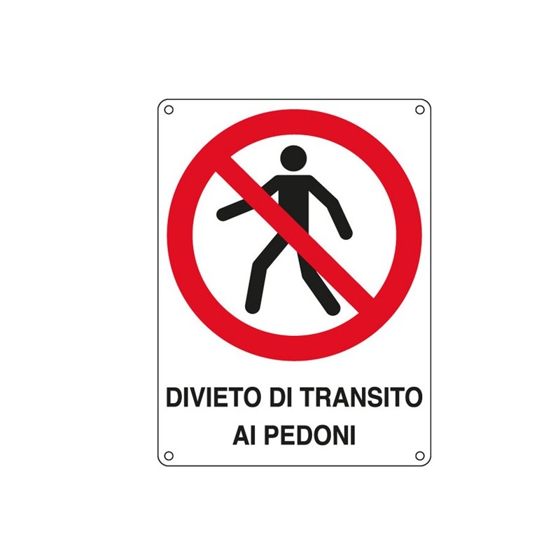 Cartello segnalatore - 27x37 cm - DIVIETO DI TRANSITO AI PEDONI - alluminio - Cartelli Segnalatori