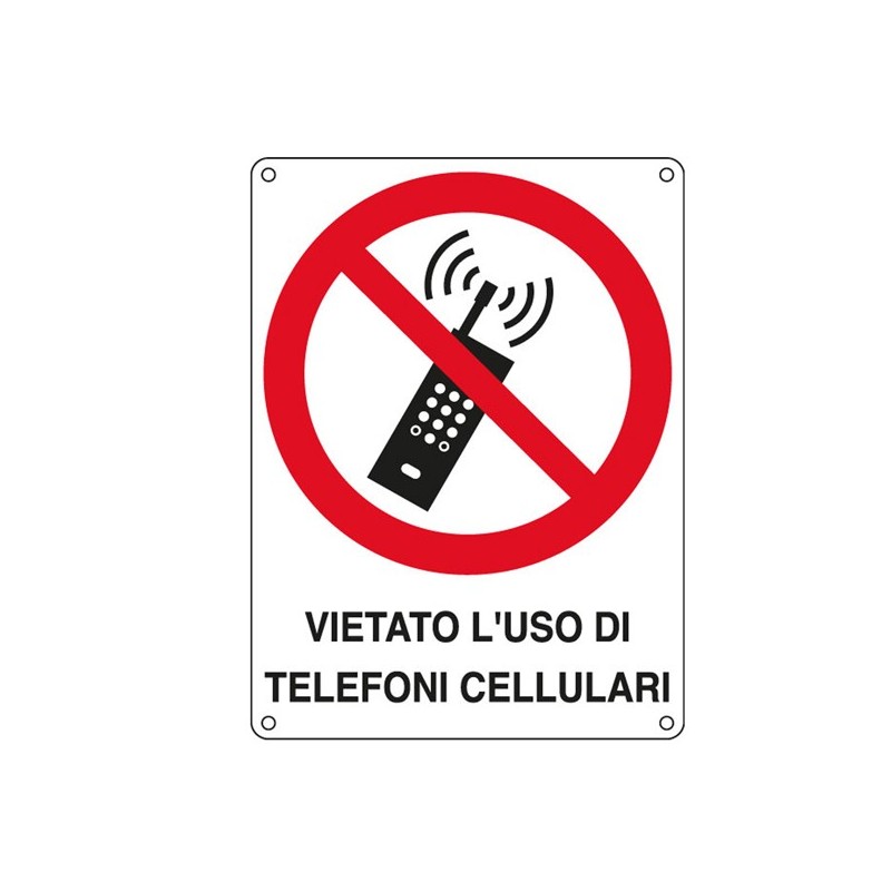 Cartello segnalatore - 16,6x23,3 cm - VIETATO L'USO DI TELEFONI CELLULARI - alluminio - Cartelli Segnalatori