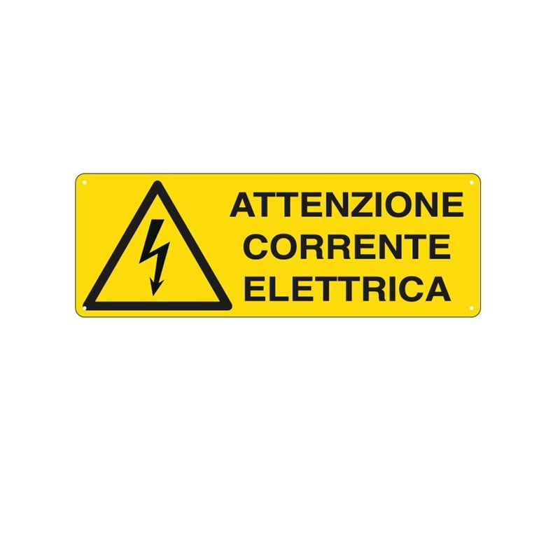 Cartello segnalatore - 35x12,5 cm ATTENZIONE CORRENTE ELETTRICA - alluminio - Cartelli Segnalatori