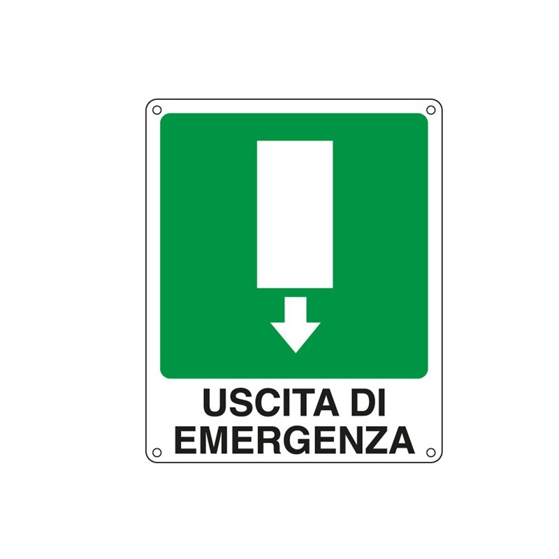 Cartello segnalatore - 25x31 cm - USCITA DI EMERGENZA - alluminio - Cartelli Segnalatori
