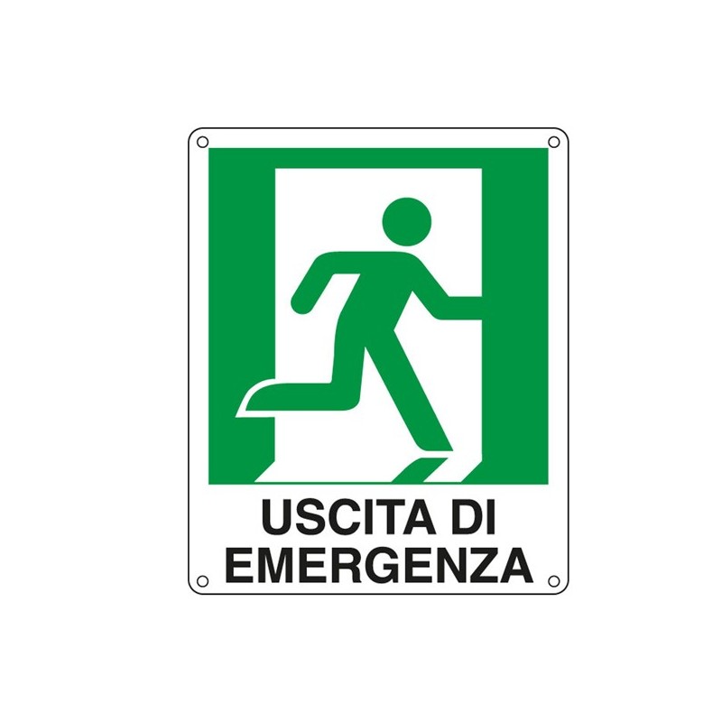 Cartello segnalatore - 25x31 cm - USCITA DI EMERGENZA (destra) - alluminio - Cartelli Segnalatori