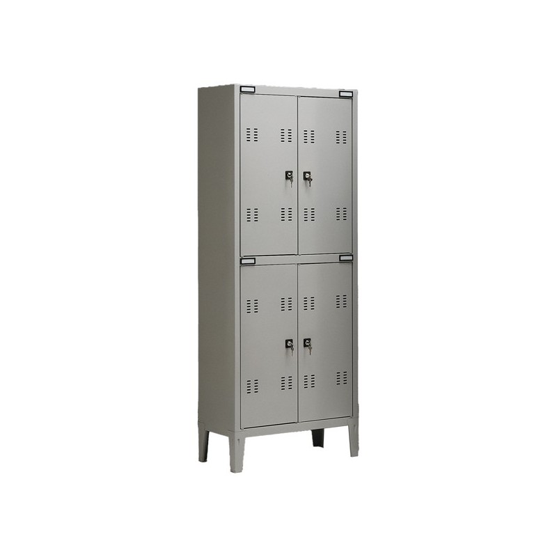 Armadio spogliatoio a 4 posti sovrapposti L70 x P35 x H180cm; in metallo verniciato grigio, provvisto di serratura e chiavi. Fornito montato.