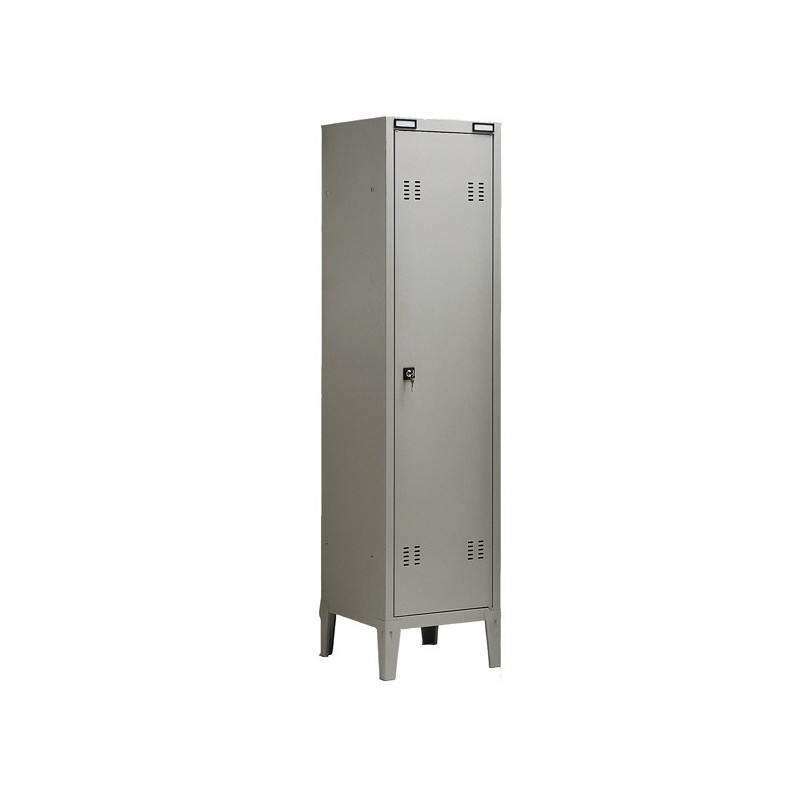 Armadio spogliatoio ad 1 posto con divisorio sporco/pulito L43 x P47 x H180cm; in metallo verniciato grigio, provvisto di serratura e chiavi. Fornito montato.