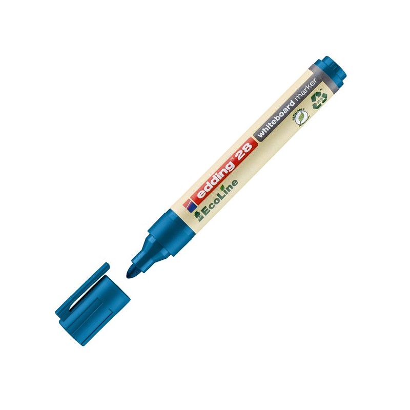 Marcatore ecoline Indicato per lavagne bianche. “Cap-off”: può rimanere senza tappo per alcuni giorni. Inchiostro pigmentato inodore. Tutti i componenti in plastica derivano per almeno il 90% da materiale riciclato. Packaging in carta riciclata.
