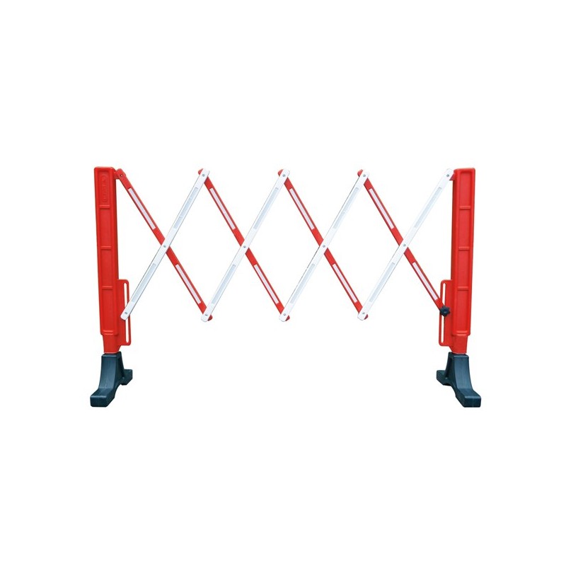 Barriera estensibile fino a 2 metri con basi in gomma da 39cm, altezza 1mt. In polipropilene colore rosso a bande bianche retroriflettenti. Dimensione chiusa: 34x39xH 100cm. Dimensioni aperta: L200 x P39 x H100cm