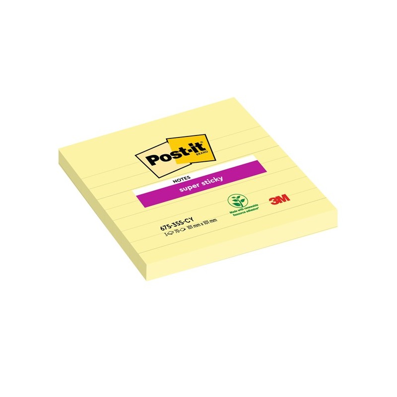 Blocchetti da 70 foglietti riposizionabili colore Giallo Canary. Grazie all'adesivo rinforzato si attaccano praticamente su tutte le superfici e non lasciano traccia. Ideali per superfici difficili o verticali. Formato 101 x 101mm.