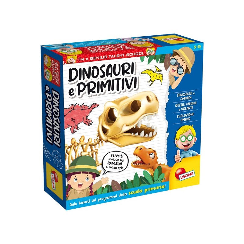 Tanti quiz facili e divertenti per scoprire i dinosauri e gli uomini primitivi. Per vincere bisogna avanzare sul tabellone e guadagnare le coccarde. Il regolamento di gioco, articolato in 3 livelli, permette anche ai bambini più piccoli di partecipare alla gara!