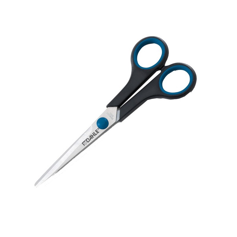 Forbici in acciaio inox temperato di alta qualità. Manico simmetrico in polipropilene con impugnatura interna in gomma morbida. Lunghezza 18cm.