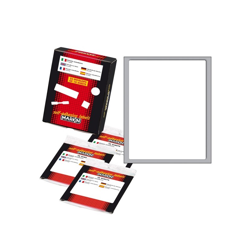 Busta da 10 fogli formato 125x152.5mm di etichette bianche permanenti. Ogni foglio contiene 1 etichette da 142x110mm.