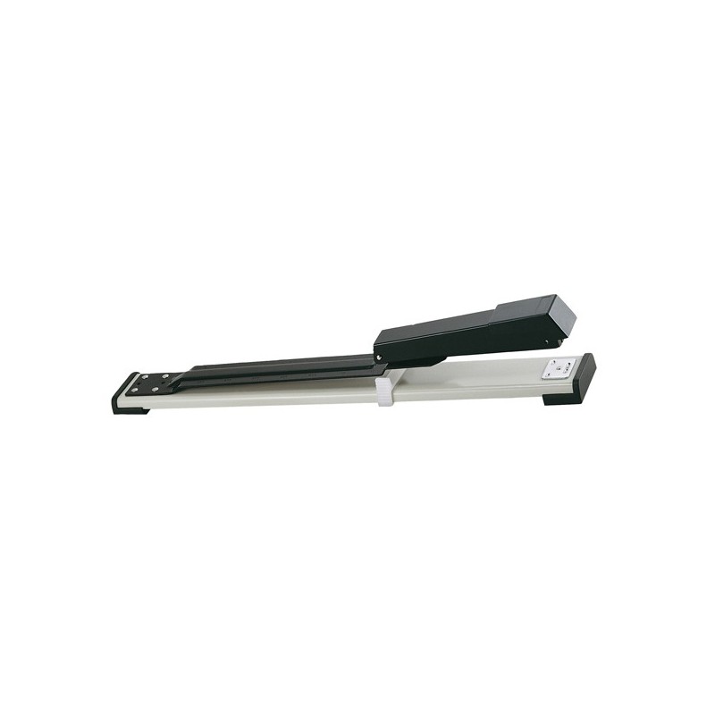Cucitrice in metallo braccio lungo. Regolatore della profondità di cucitura: si Profondità max di cucitura: 317mm Capacità max di cucitura: 20fg Tipo di punto: aperto e chiuso Punti utilizzabili: 24/6 e 26/6 Dimensioni: 397x52x70mm