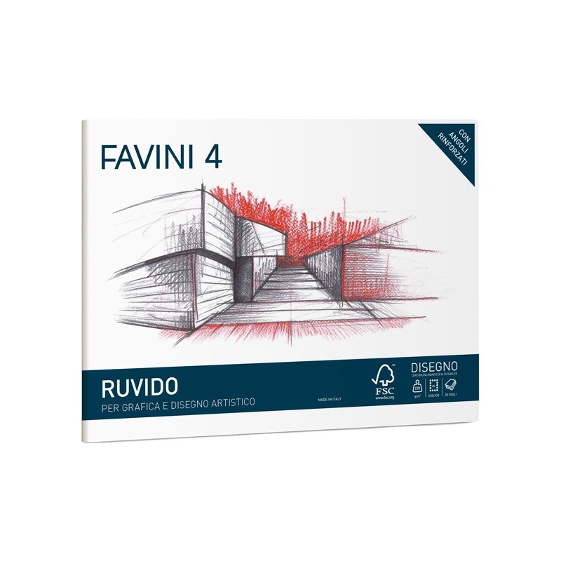 Cartella 4 angoli ALBUM DISEGNO FAVINI 4 formato 24x33cm 220gr, 20 fogli ruvido