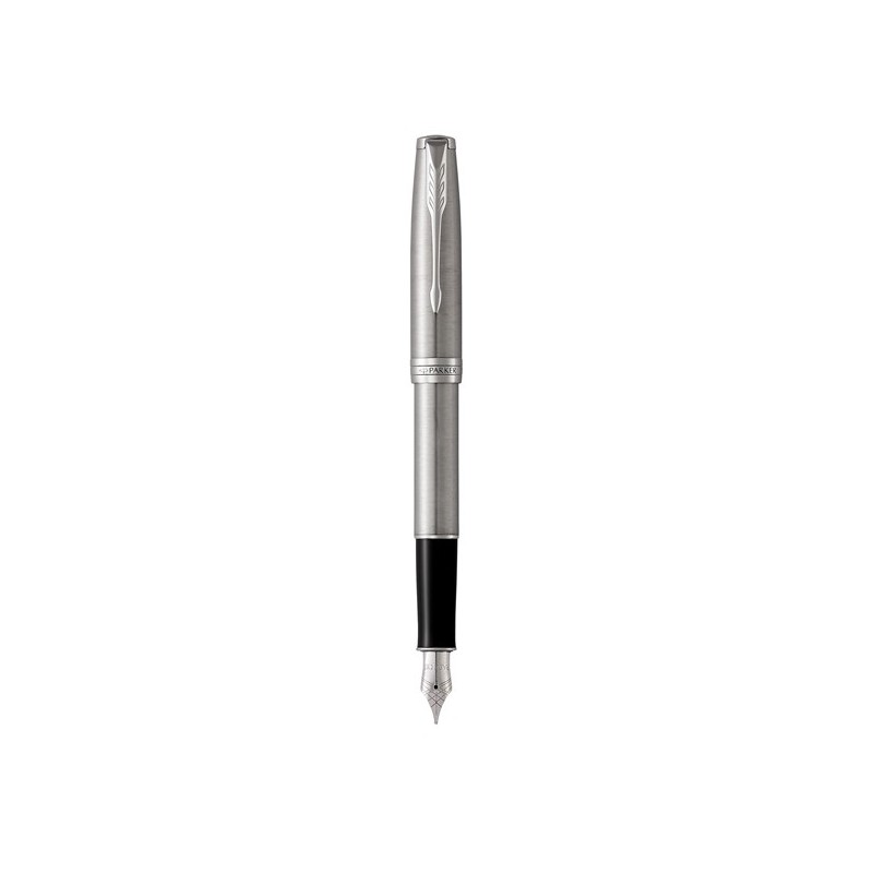 Elegante penna con finiture in acciaio inossidabile con effetto metallo spazzolato. Con finiture in palladio sui puntali e pennino in acciaio inossidabile. Fornita con cartuccia quink nera. Fornito con esclusivo astuccio Parker.