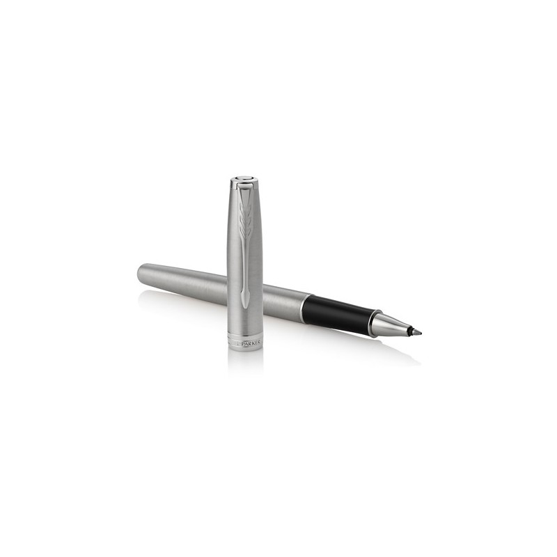 Elegante penna con finiture in acciaio inossidabile con effetto metallo spazzolato. con finiture in palladio sui puntali e pennino in acciaio inossidabile. Fornita con refill standard. Fornita con esclusivo astuccio Parker.