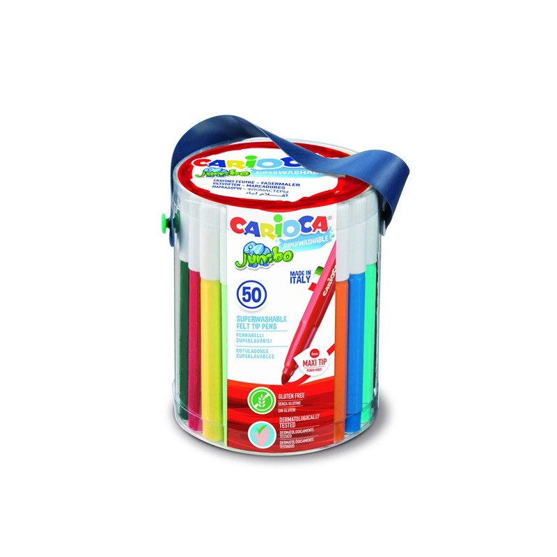 Pennarello punta maxi. Punta da 6mm. Tratto da 2 a 4mm. Fusto ottagonale per una facile impugnatura. Lunghezza 14,2cm con diametro di 1,2cm. Inchiostro superlavabile a base d'acqua. Confezionato in barattolo con tracolla.