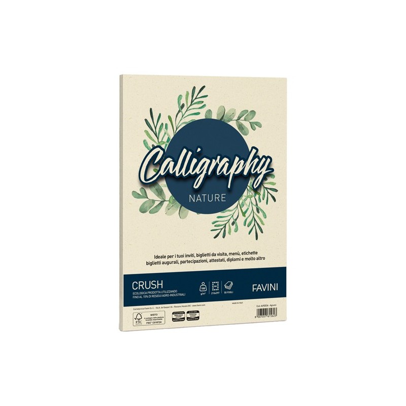 Carta da 100grammi ecologico prodotto e brevettato da Favini utilizzando fino al 15% di residui della lavorazione agro-industriale. Superficie delicata al tatto. Ideale per ogni tipo di stampa e rilegatura. Formato 21x29,7cm.