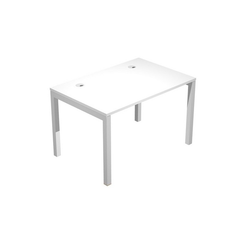 Scrivania per postazione singola dimensioni: L120 x P80 x H72,5cm. Le scrivanie per postazione singola o multipla, sono in bilaminato nobilitato melaminico conforme alle norme UNI e EN classe E1, antigraffio ed antiriflesso, hanno sp. 25 mm con bordo sp. 2 mm in ABS resistente agli urti. Sono caratterizzate da robuste gambe a ponte in metallo a sezione quadrata (50 x 50 mm) verniciate a polveri epossidiche nel colore grigio alluminio, complete di piedini regolabili in altezza.
