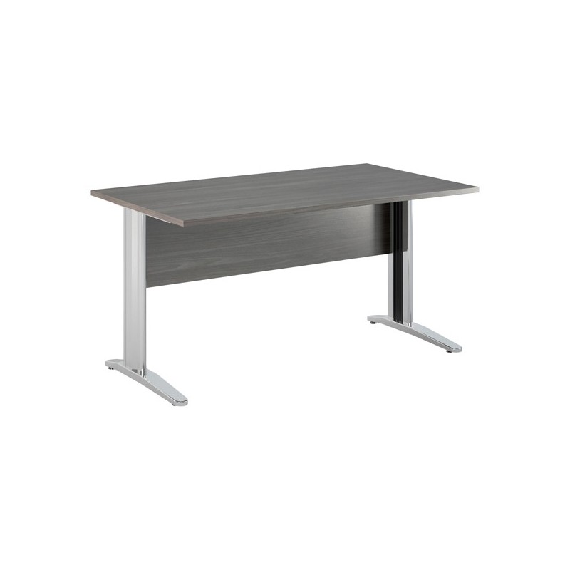 Scrivanie con dimensioni conformi alle normative sulla sicurezza dei posti di lavoro in ufficio. Bordatura dei piani in ABS 2mm antishock ed assenza di spigoli vivi. Le scrivanie sono disponibili nella versione con fianchi pannello in melaminico (sp. 22 mm) o con fianchi in metallo ad L verniciati effetto cromo completi di piedini regolabili in altezza e canalina passacavi ispezionabile. Dimensioni: L160 x P80 x H72cm