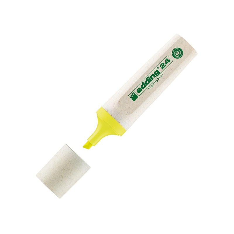 Inchiostro a base d'acqua dai colori fluo particolarmente brillanti. Il prodotto è ricaricabile. Almeno il 90% del cappuccio e dello stelo è composto da materie prime rinnovabili. Almeno il 97% della punta deriva da materiale riciclato. Punta a scalpello. Tratto da 2-5mm.