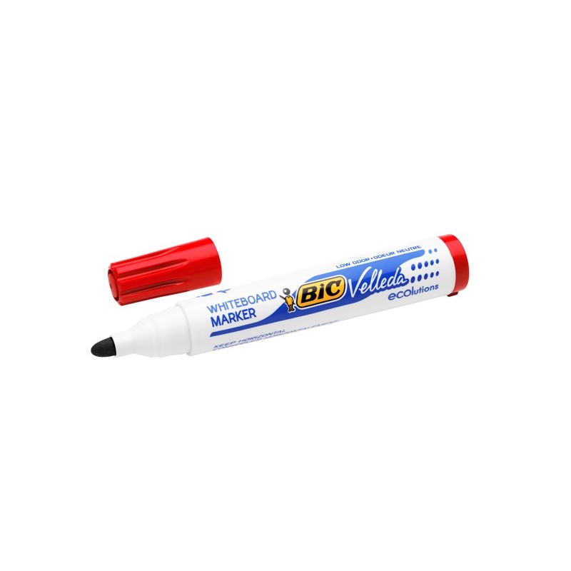 Marcatore per lavagne cancellabili. Inchiostro a base d'alcool, odore tenue, cancellabile a secco da quasi tutte le superfici liscie. Fusto in plastica riciclata. Punta 1,5mm. Colore: rosso.