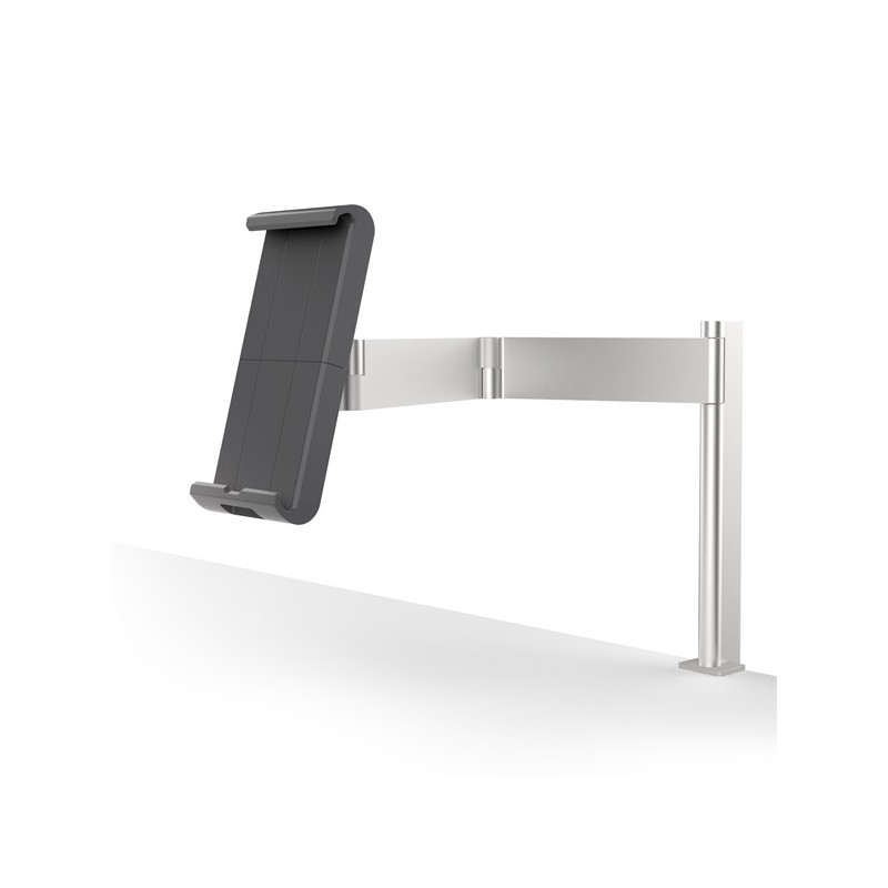 Porta Tablet da banco. Adatto a tablet da 7” a 13”; Realizzato in materiali e finiture di altissima qualità; Inserimento e rimozione del tablet con una sola mano; Orientabile a 360° e posizionabile in orizzontale o verticale; Ergonomia assicurata dall’ampio angolo di visualizzazione; Robusto e stabile, con dispositivo anti-furto KSS; Sistema di cablaggio integrato; Design elegante e moderno, adatto ad ambienti formali.