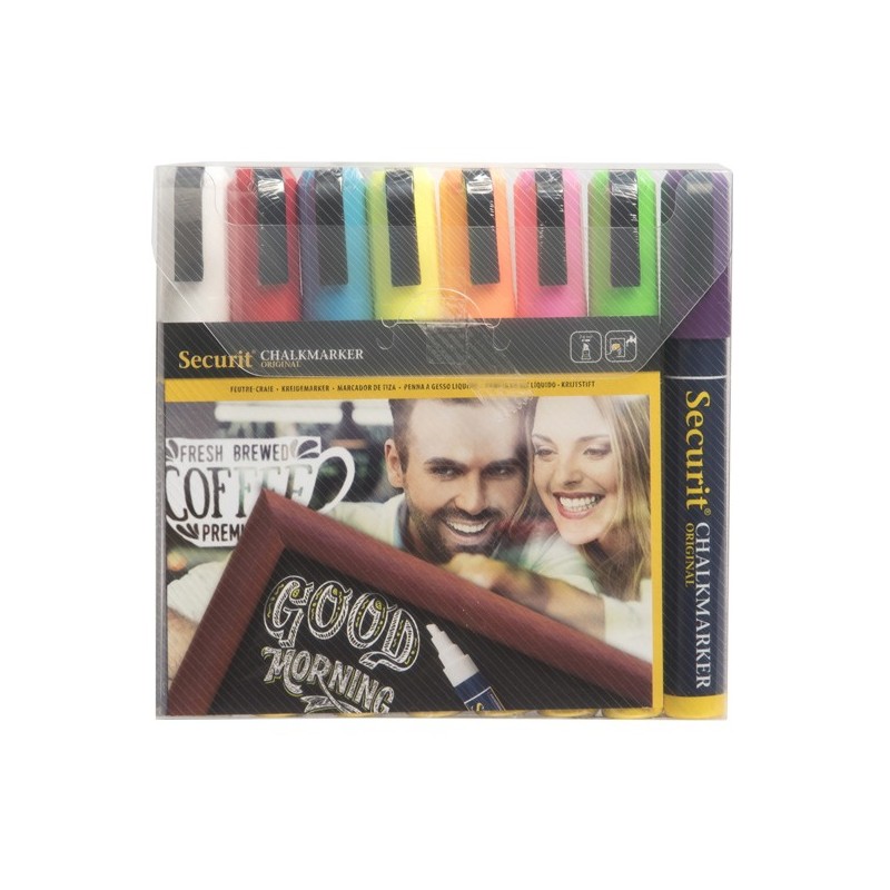 Marcatore a gesso liquido - punta media 2,00 - 6,00 mm - mix 8 colori - Securit - conf. 8 pezzi