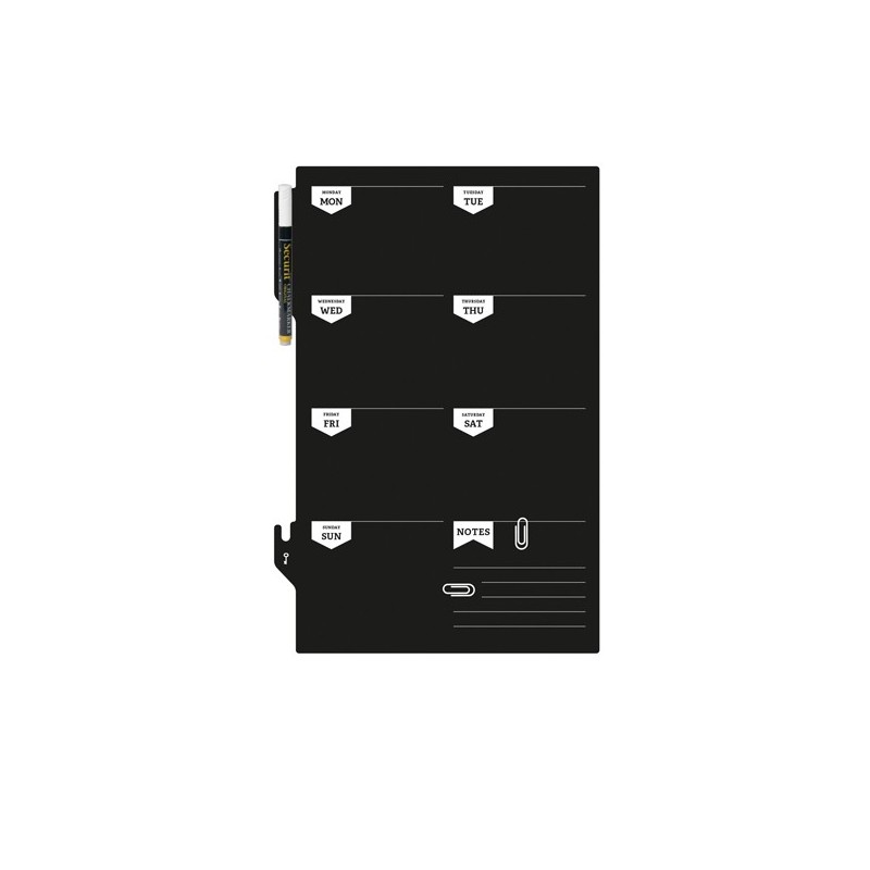 Lavagna da parete con calendario settimanale per pianificare e annotare ogni evento della settimana. Fornita con un pennarello a gesso liquido. Dimensioni: 30x45cm.