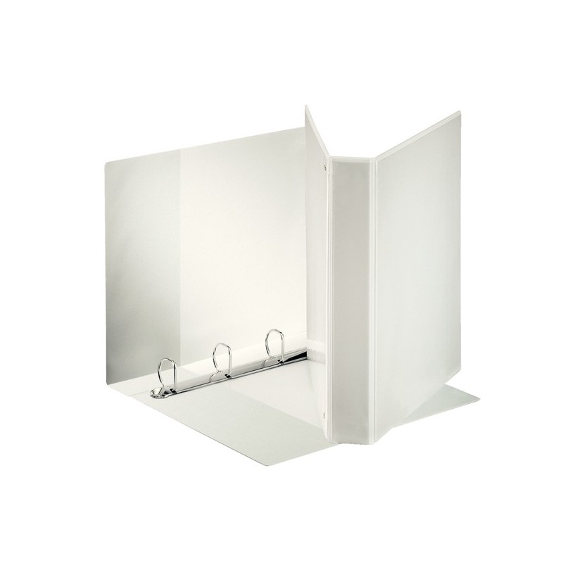 Raccoglitore display formato Maxi, in cartone da 2 mm rivestito in polipropilene eco-compatibile con finitura tipo pelle. Il rivestimento, incollato su entrambi i lati e saldato ai bordi, garantisce un prodotto di qualità eccellente. Il formato del raccoglitore consente di inserire indici e intercalari in formato Maxi per ospitare buste a perforazione universale. La personalizzazione è resa agevole da tre tasche esterne, mentre due tasche interne permettono di contenere fogli sparsi e appunti. Meccanismo a 4 anelli (a D, altezza 30 mm). Formato utile: 22x30 cm (A4). Dimensioni: 270x350x30 mm. Capacità: 280 fogli A4 (80 gr/mq). Colore bianco.