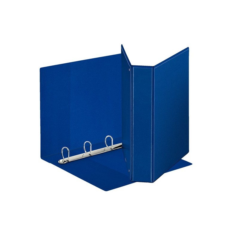 Raccoglitore display formato Maxi, in cartone da 2 mm rivestito in polipropilene eco-compatibile con finitura tipo pelle. Il rivestimento, incollato su entrambi i lati e saldato ai bordi, garantisce un prodotto di qualità eccellente. Il formato del raccoglitore consente di inserire indici e intercalari in formato Maxi per ospitare buste a perforazione universale. La personalizzazione è resa agevole da tre tasche esterne, mentre due tasche interne permettono di contenere fogli sparsi e appunti. Meccanismo a 4 anelli (a D, altezza 50 mm). Formato utile: 22x30 cm (A4). Dimensioni: 270x350x50 mm. Capacità: 480 fogli A4 (80 gr/mq). Colore blu.
