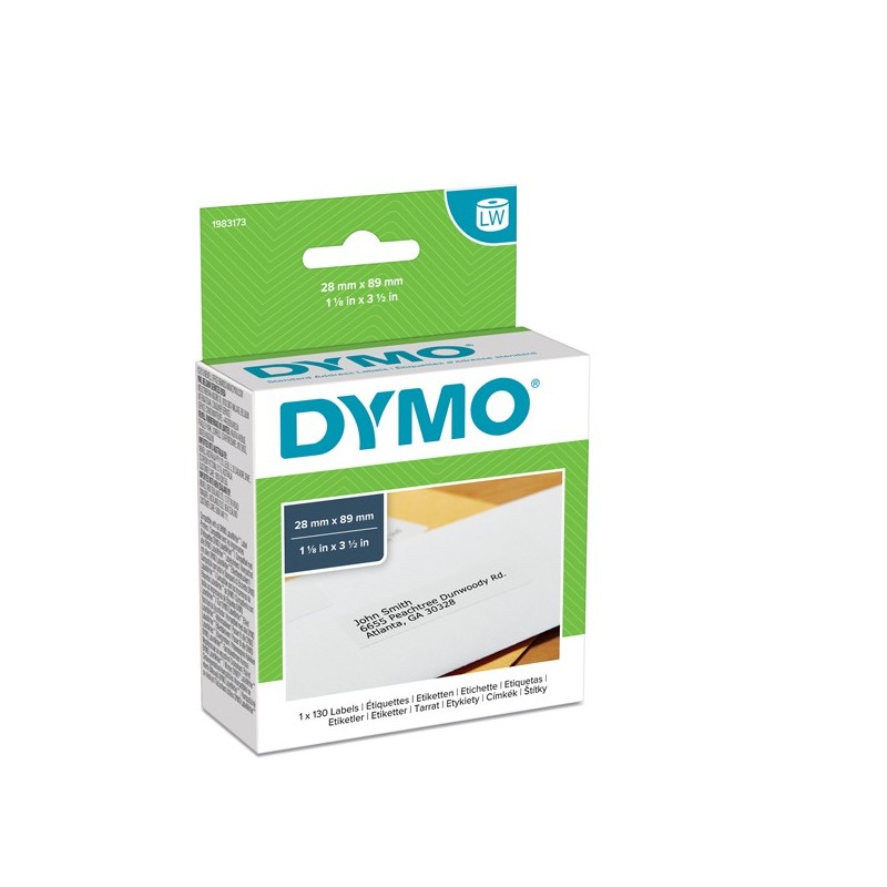 Rotolo etichette adesive permanenti in carta bianca per indirizzi standard 89x28mm. 130 etichette per rotolo. Utilizzabili con le stampanti per etichette labelwriter.