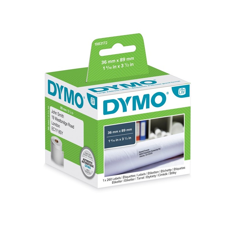Rotolo etichette adesive permanenti in carta bianca per indirizzi estesi 89x36mm. 260 etichette/rotolo. Utilizzabili con le stampanti per etichette labelwriter.