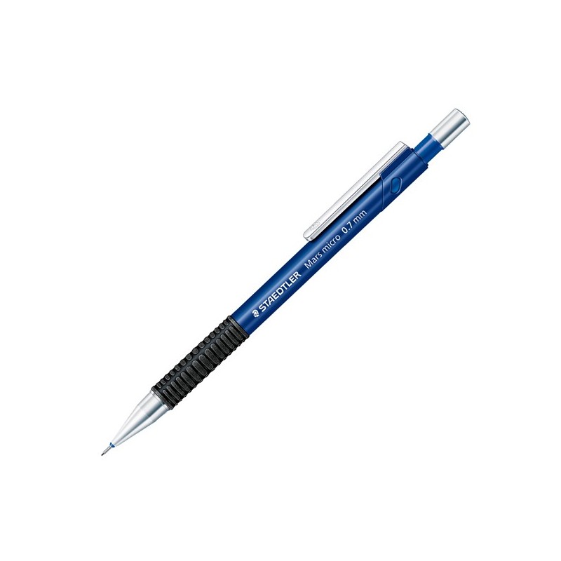 Portamine Mars Micro 775 ideale per scrittura e disegno tecnico, dotato di impugnatura in caucciù naturale, pulsante, gommino sostituibile, clip, puntale ad ago rientrante e mina molleggiata. Mina 0,7mm.