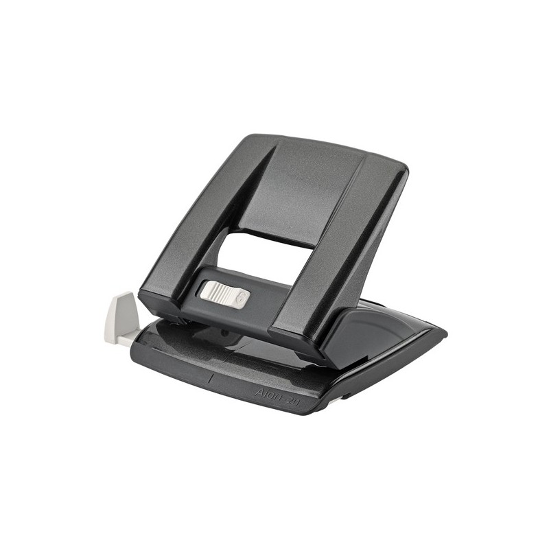 Perforatore a 2 fori in metallo con guida regolabile ed inserti in abs. Di robusta costruzione, consente di perforare fi no a 20 fogli con il minimo sforzo.Dotato di meccanismo di sicurezza e salva spazio blocco/sblocco impugnatura). Pratico e veloce grazie al pulsante preposto posizionato sul fronte dell‘impugnatura.