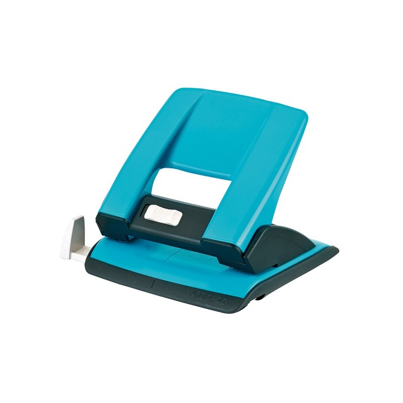 Perforatore a 2 fori in metallo con guida regolabile ed inserti in abs. Di robusta costruzione, consente di perforare fi no a 20 fogli con il minimo sforzo.Dotato di meccanismo di sicurezza e salva spazio blocco/sblocco impugnatura). Pratico e veloce grazie al pulsante preposto posizionato sul fronte dell‘impugnatura.