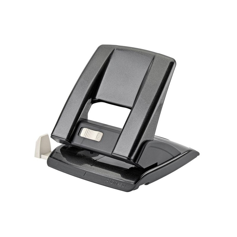 Perforatore a 2 fori in metallo con guida regolabile ed inserti in abs. Di robusta costruzione, consente di perforare fi no a 30 fogli con il minimo sforzo.Dotato di meccanismo di sicurezza e salva spazio (blocco/sblocco impugnatura). Pratico e veloce grazie al pulsante preposto posizionato sul fronte dell‘impugnatura.