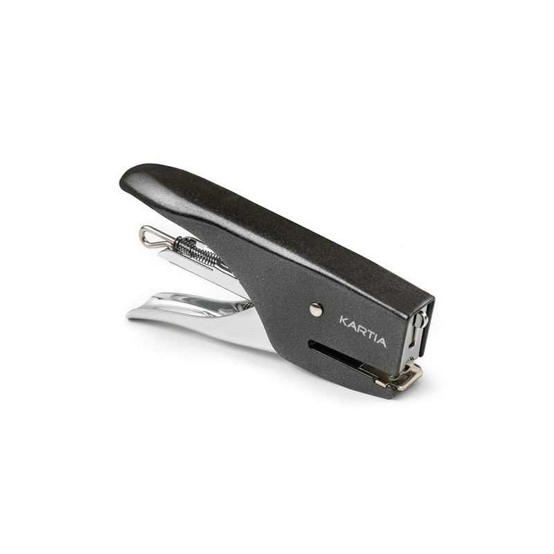Mini cucitrice manuale a pinza passo 10, punto chiuso, in acciaio cromato e verniciato. Capacità di carica massima 50 punti. Nella confezione anche una scatola di punti n°10. Profondità di cucitura 30mm.