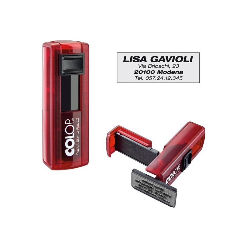 Timbro tascabile personalizzabile e autoinchiostrante. Prestazioni ad alto livello e design elegante: un oggetto piacevole, oltre che utile. Formato piastra 14x38mm per 4 righe di testo. Tampone di ricambio E/PSP20.