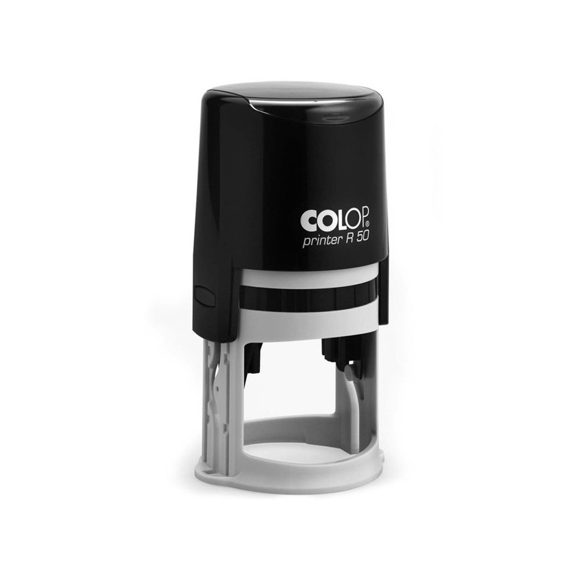 Timbro autoinchiostrante rotondo di plastica. Diametro 50mm. Piastra da 6 righe. Tampone ricambio E/R50.