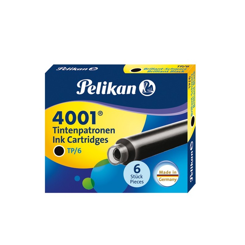 Cartucce adatte a qualunque stilografica. Inchiostro di ottima qualità. Permanente nei colori nero, rosso e verde; lavabile e cancellabile con cancellino Superpirat nel colore BluRoyal. Confezione da 6 cartucce. Colore: nero.