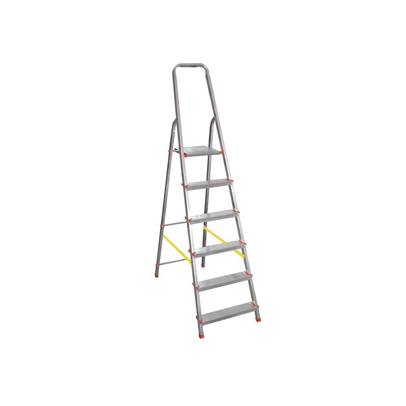 Scale domestiche leggere e resistenti in alluminio con parapetto ad arco chiuso di 60cm. Gradino antisdruciolo da 80mm fissato con doppi rivetti passanti per garantire un uso confortevole e sicuro. Piattaforma 250x265mm ad innesto rapido. Altezza piattaforma 1,32m. UNI EN 131. D.Lgs 81/2008 art.113. D.Lgs 206/2005 art.2 consumatori. Portata massima 150 KG.