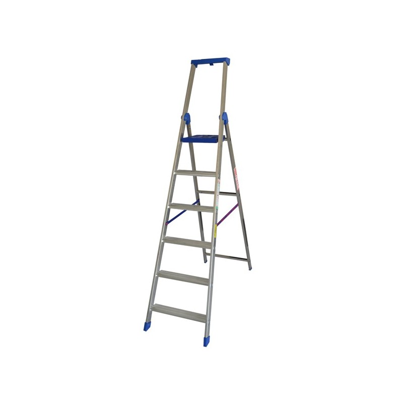Scale con gradino espanso e ribordato che permette un utilizzo intensivo per il professionista e per chi vuole lavorare in perfetta sicurezza. Parapetto da 60cm con vaschetta portaoggetti e gradino antisdrucciolo da 80mm. Piattaforma automatica 270x290mm. Altezza piattaforma 1,45m. UNI EN 131. D.Lgs 81/2008 art.113. D.Lgs 206/2005 art.2 consumatori. Portata massima 150 KG.