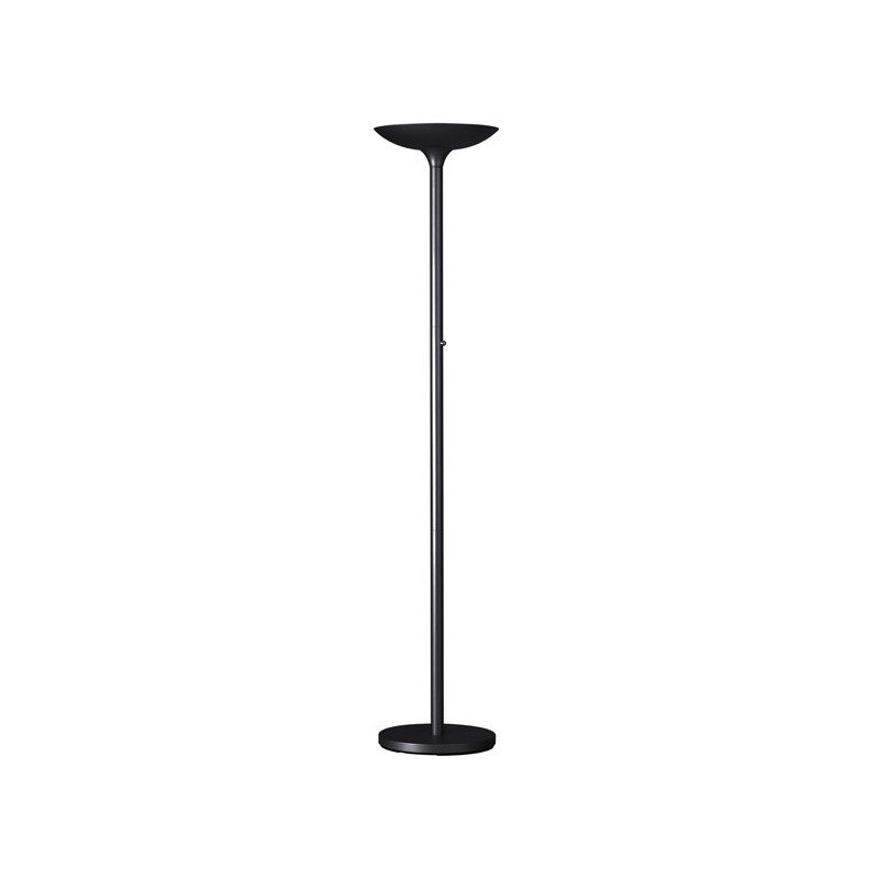 Piantane essenziali e funzionali; lo smalto riflettente all'interno della calotta assicura un'eccellente illuminazione indiretta. Base zavorrata per la massima stabilità. Dimmer sul fusto. Altezza 180cm. Led 29,9W integrato. Classe energetica: D. Made in China.