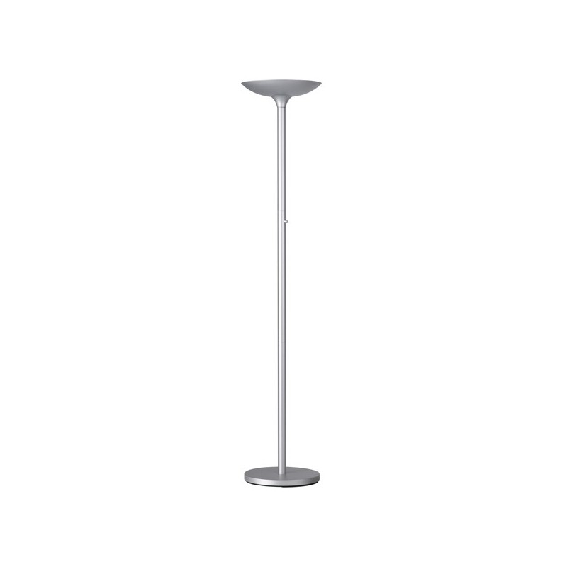 Piantane essenziali e funzionali; lo smalto riflettente all'interno della calotta assicura un'eccellente illuminazione indiretta. Base zavorrata per la massima stabilità. Dimmer sul fusto. Altezza 180cm. Led 29,9W integrato. Made in China.