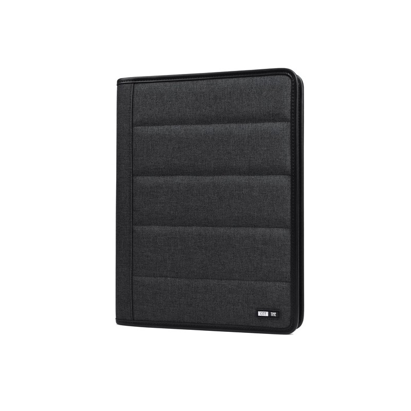 Portablocco in tessuto. Chiusura con cerniera e tasca interna con vari scomparti. Completo di blocco.