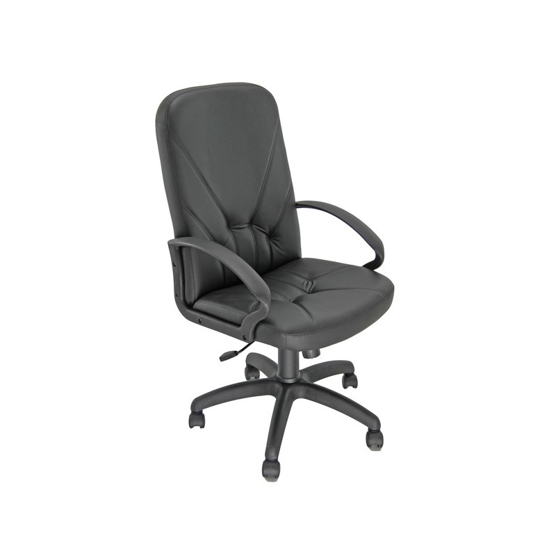 Poltrona in similpelle colore nero con schienale alto. Braccioli e base con ruote in nylon. Meccanismo oscillante con blocchi. Schienale fisso. Elevazione a gas.