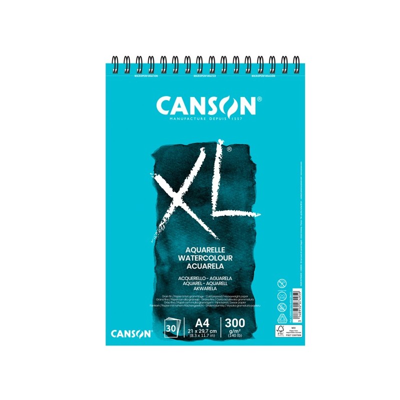 Album spiralato lato corto con carta a grana fine perfetta per acquarello. Facile asportazione dell'acqua in eccesso.