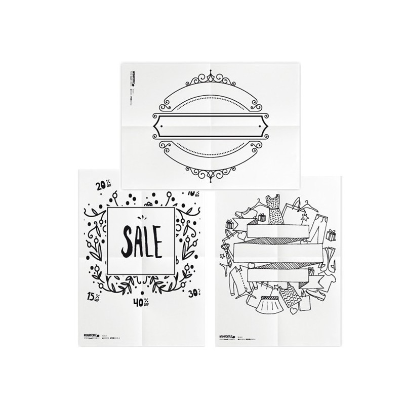 SET STENCIL a tema SCONTI / OFFERTE, ideali per decorare le vetrine. Su fogli in carta dimensione A2.