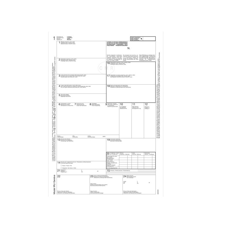 Lettera di vettura internazionale CMR MC, 5 copie autoricalcanti. Formato12x24cm.