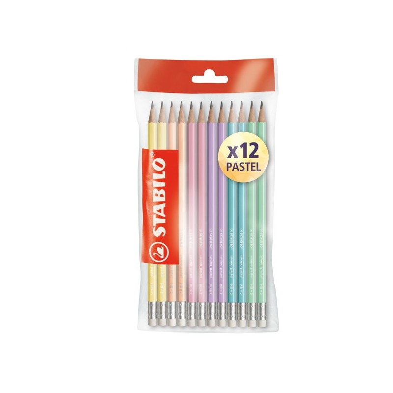 Matite in grafite dal fusto in 6 colori assortiti pastel, dotate di gommino. Gradazione HB , tratto 2,5 mm, confezione 12 pezzi.