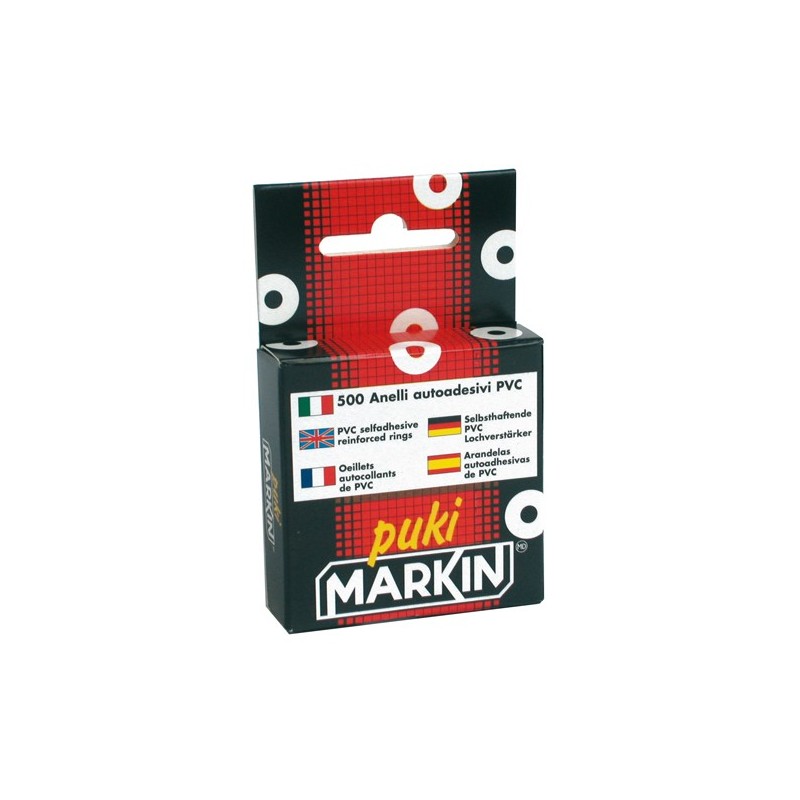 dispenser da 500 ANELLi RINFORZAFORO IN POLIESTERE AUTOADESIVA TRASPARENTE. dimensioni l 93 x b 56 x p 17mm Peso 22gr GARANZIA 2 ANNI