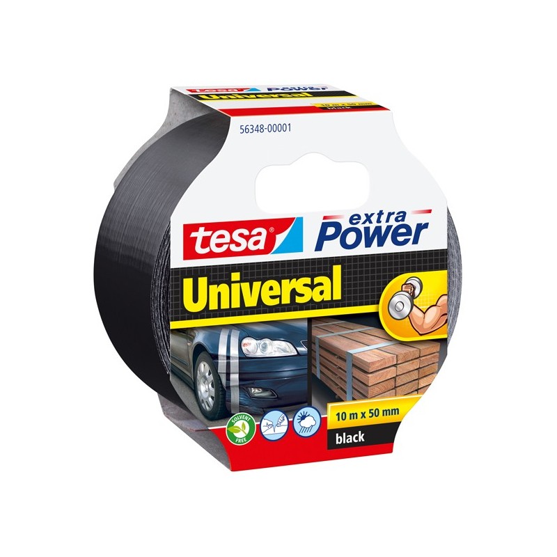 Tesa extra Power® Universale è un nastro telato con grande potere adesivo. Chiamato anche nastro americano, è ideale per lavori manuali, riparazioni, fissaggio, imballaggio, marcatura e altro. Questo nastro telato spicca per la sua forza ma allo stesso tempo può essere strappato a mano e dunque è sempre pronto per riparazioni veloci. Ha buona adesione a tutti i tipi di superfici, è resistente agli agenti atmosferici si presta quindi ad applicazioni in interni ed esterni. E' privo di solventi.